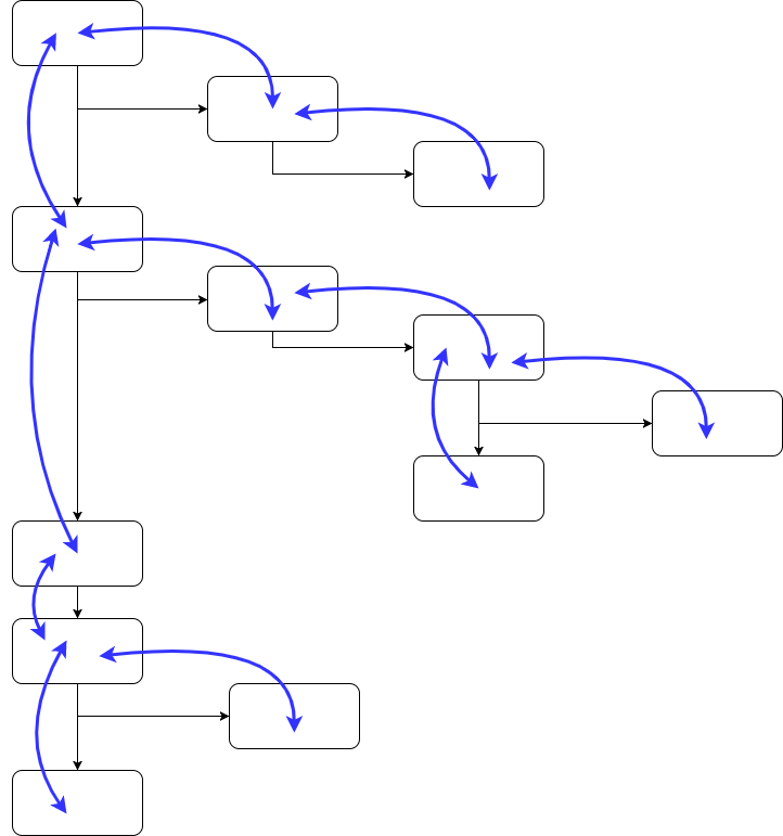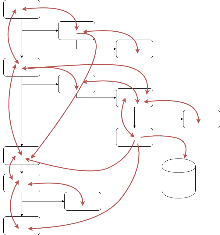 If we superimpose the flow of data through our system on top of this diagram, we can see that the two nicely map onto one another and the logic is easy to follow. This is because data can only flow up and down our ‘call stack’ through function arguments and return values: